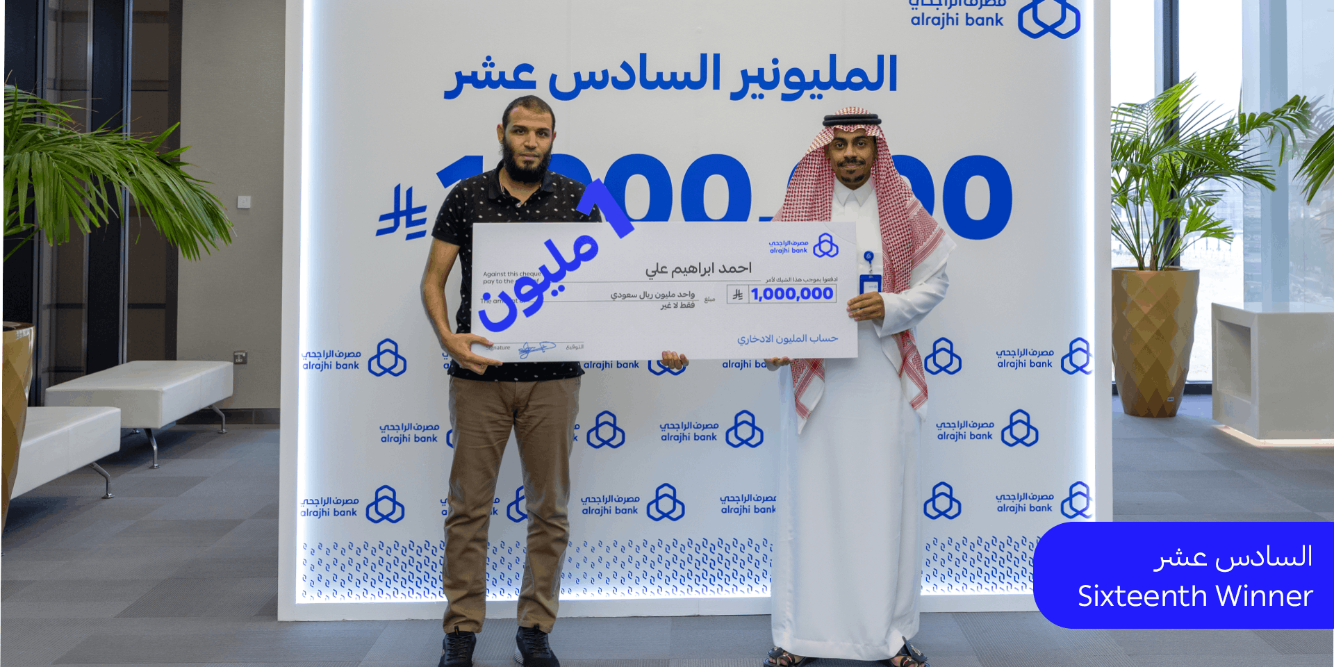 كل 8 أسابيع ممكن تفوز بالمليون، وكل أسبوع تدخل في السحب على 10,000 ريال لـ 10 فائزين