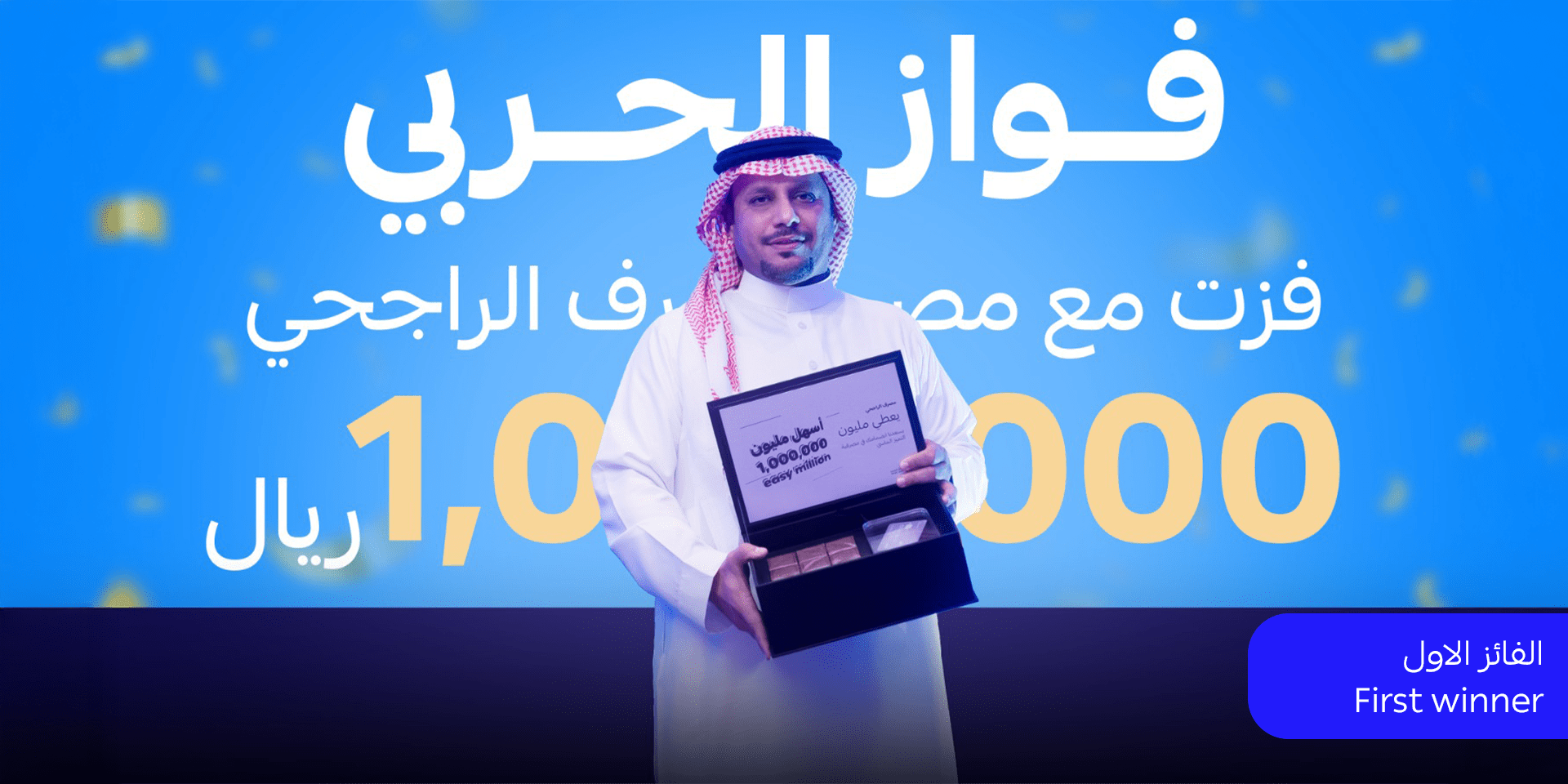 حساب المليون هو حساب ادخاري مصمم ليحوّل الادخار إلى فرصة حقيقية للربح. بمجرد بدءك بالادخار، تدخل تلقائيًا في سحوبات منتظمة على جوائز قيّمة، تبدأ بجوائز أسبوعية وتنتهي بجائزة كبرى كل 8 أسابيع بقيمة مليون ريال