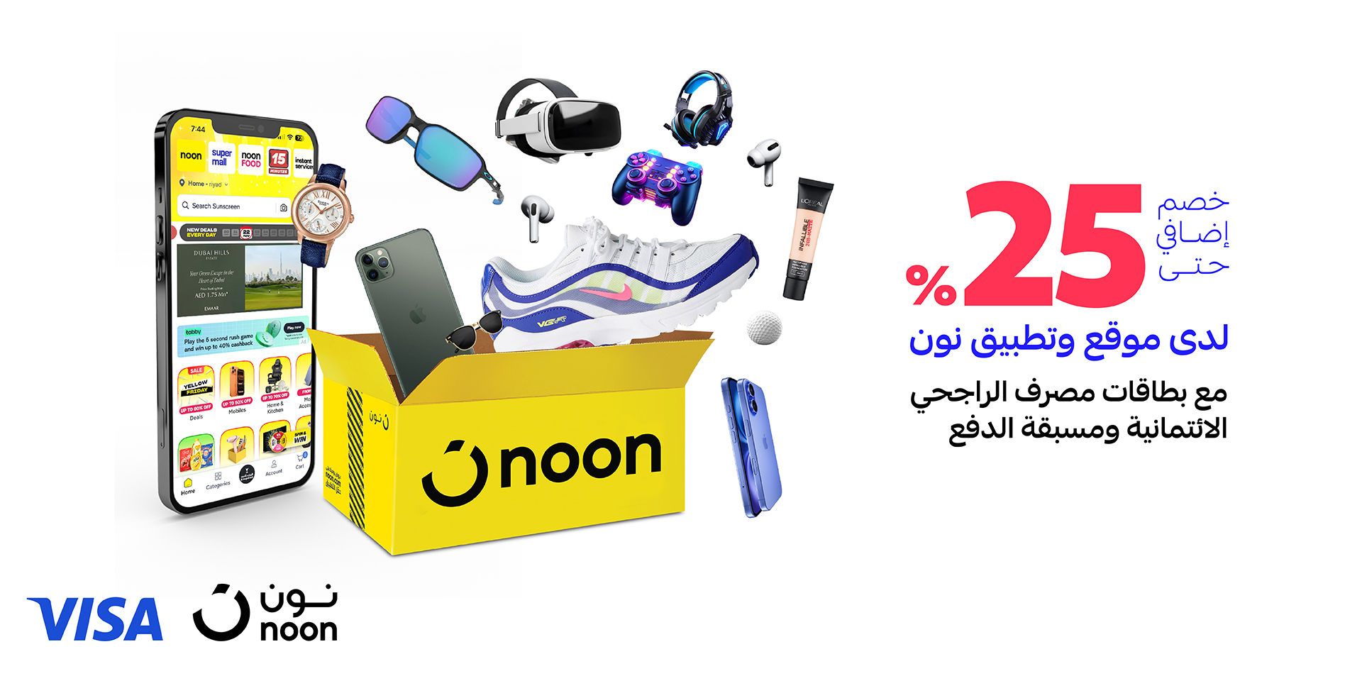 خصم إضافي يصل الى 25 % عند الشراء بمبلغ 100 ريال أوأكثر لدى تطبيق نون أو موقع الإلكتروني