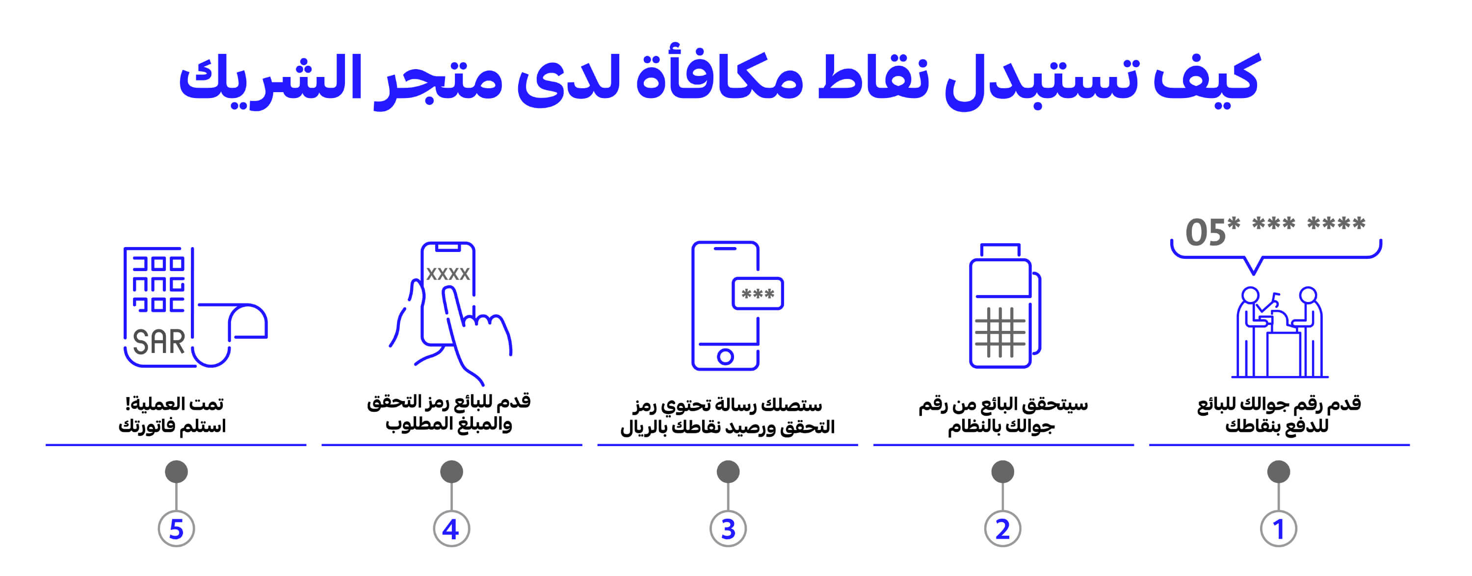 - استبدال وكسب النقاط بكل بساطة في فروع الشركاء عن طريق رقم الجوال